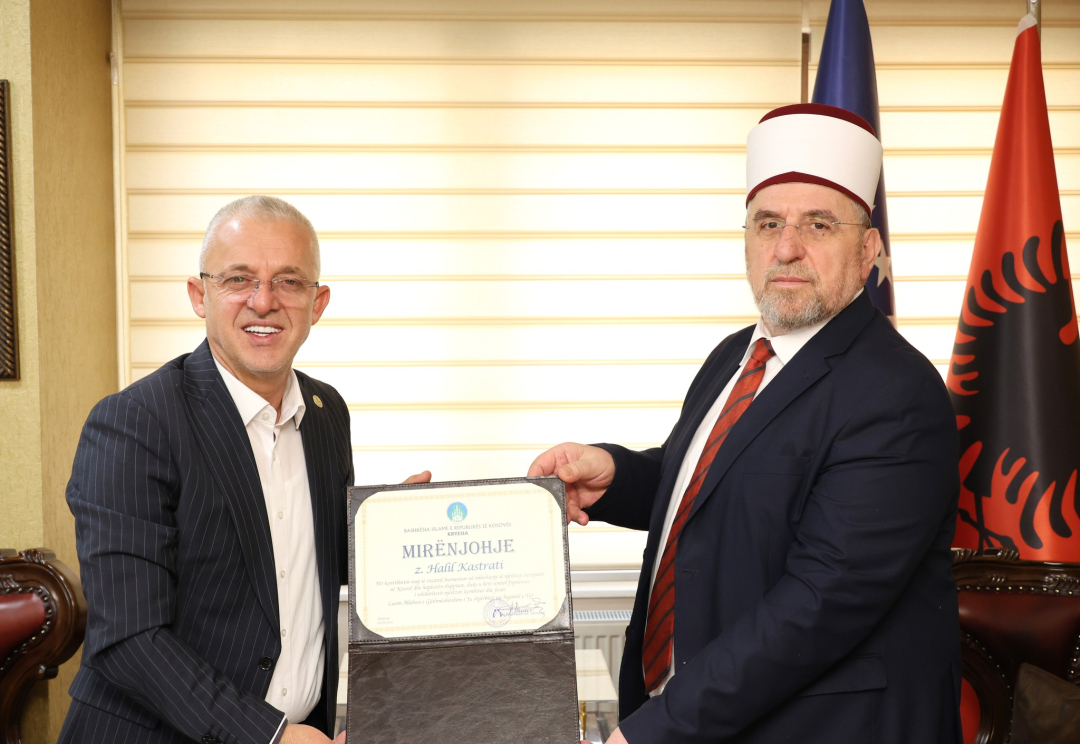 Kryetari i Bashkësisë Islame të Kosovës, Myftiu Naim ef. Tërnava, ka pritur sot në takim drejtorin e shoqatës “Jetimat e Ballkanit” z. Halil Kastrati.