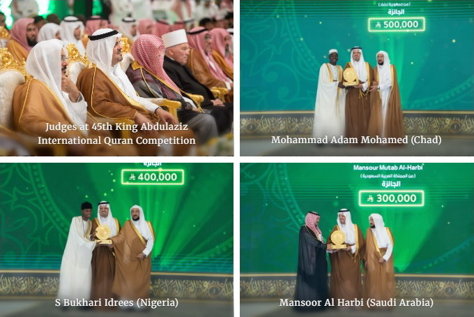 Mohammad Adam Mohamed nga Çadi është shpallur fitues i vendit të parë në edicionin e 45-të të Garave Ndërkombëtar të Kuranit "Mbreti Abdulaziz" për Memorizim, Recitim dhe Interpretim, duke fituar çmimin madhor prej 500,000 riali sauditë.
