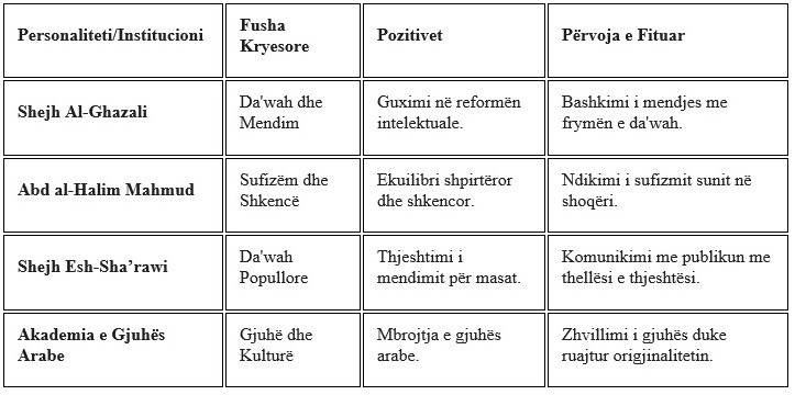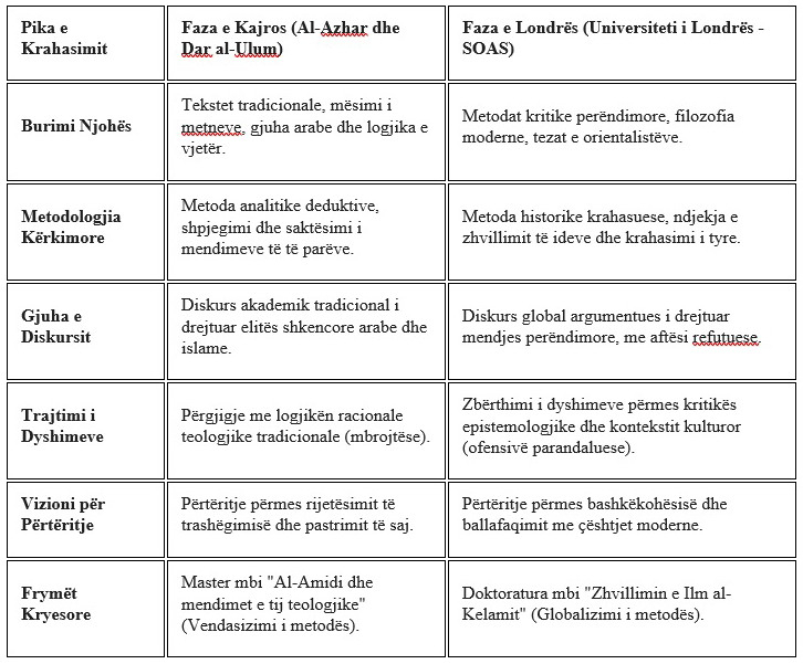 Dr. Ismaili argumenton se projekti i Dr. Esh-Shafi'it tejkalon rolet institucionale, duke u shfaqur si një projekt qytetërues ku gërshetohen shkenca, edukimi dhe dialogu kulturor. Artikulli ndjek kronologjikisht rrugëtimin e tij: që nga formimi unik akademik në Al-Azhar dhe "Dar al-Ulum", te sprovat politike që forcuan integritetin e tij, e deri te mbrojtja e doktoraturës në Universitetin e Londrës (SOAS).