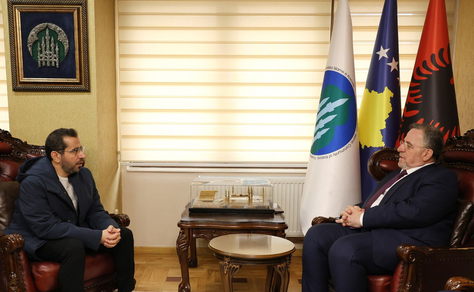 Kryetari i Bashkësisë Islame të Kosovës, Myftiu Naim ef. Tërnava, ka pritur sot sot në takim z. Abdullah al Kabi, përfaqësues i Shoqatës "Al Mubarrah International Charitable Association" nga Emiratet e Bashkuara Arabe, me të cilin bisedoi për bashkëpunimin dhe aktivitetet humanitare gjatë muajit të bekuar Ramazan.