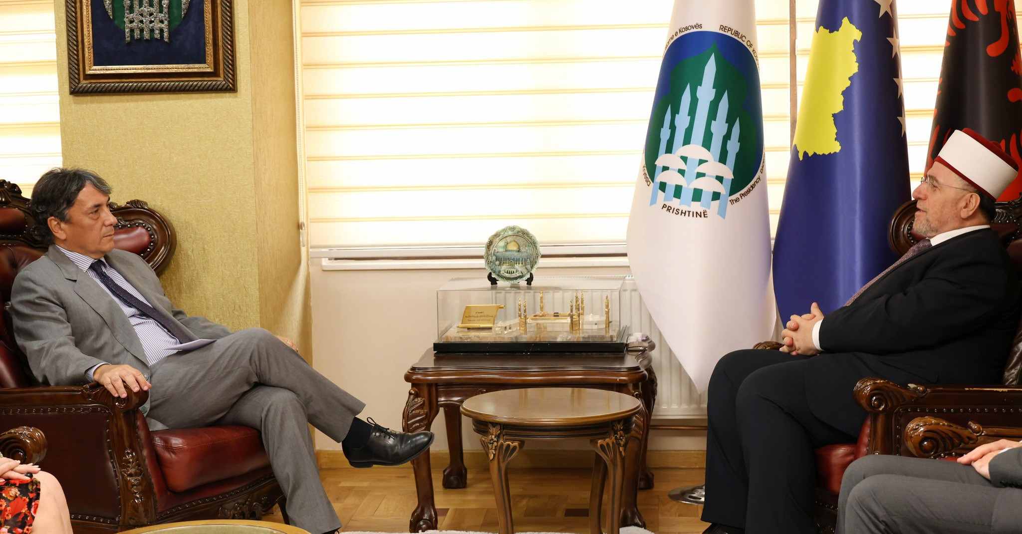 Kryetari i Bashkësisë Islame të Kosovës, Myftiu Naim ef. Tërnava, ka pritur sot në një takim kurtuazie ambasadorin e Italisë në Republikën e Kosovës, z. Maurizio Antonini.