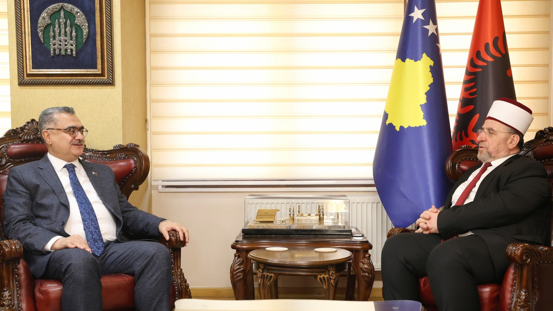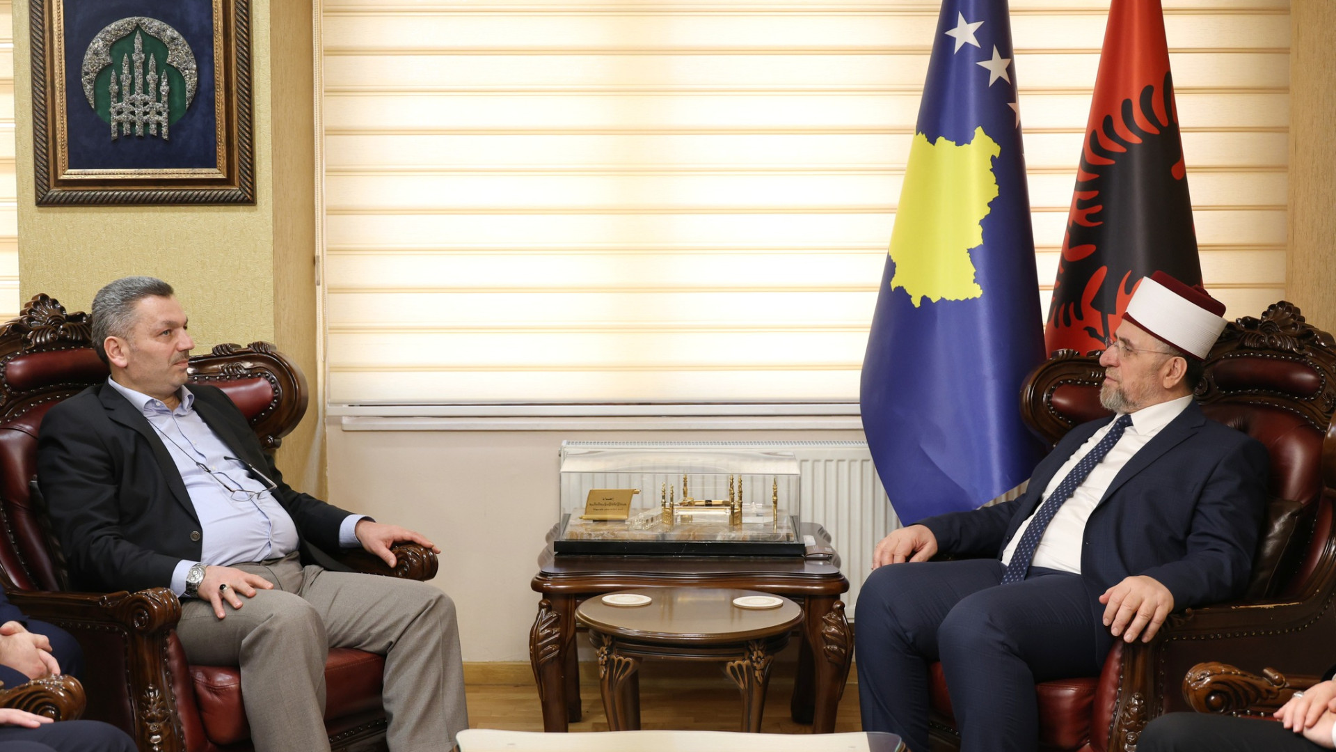 Kryetari i Bashkësisë Islame të Kosovës, Myftiu Naim ef. Tërnava, pritisot në takim anëtarin e Këshillit Drejtues të Fondacionit Humanitar për të Drejtat dhe Liritë e Njeriut – IHH, z. Osman Atalay.