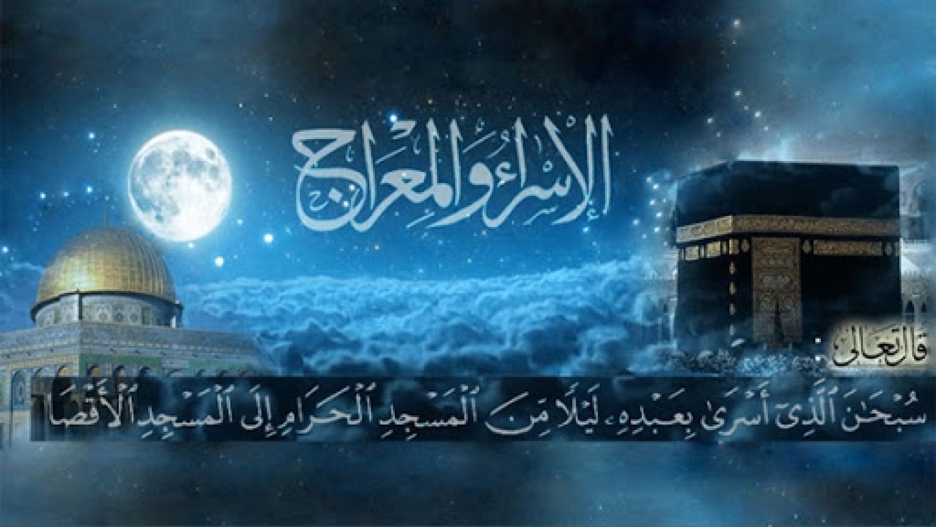 “I lartësuar është Allahu, që i mundësoi robit të vet (Muha-medit a.s.) që brenda një nate të udhëtojë nga Mexhidul-Ha-rami (Qabeja) deri te Mesxhidul-Aksaja (Kudsi), rrethinën e së cilës e kemi bekuar, në mënyrë që njerëzve t’u tregojmë disa nga argumentet tona. Vërtet Allahu dëgjon dhe sheh çdo gjë” (El Isra, 1).