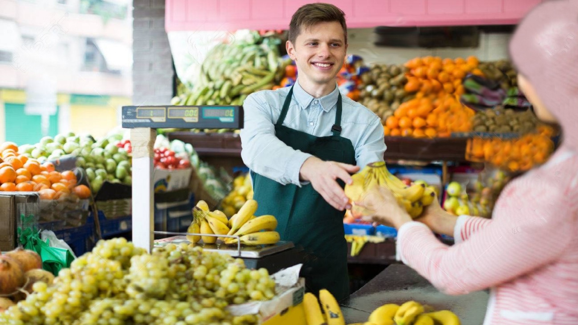 Një burrë hyn në një dyqan ushqimesh dhe pyet për çmimin e kiles së mollëve dhe bananeve.